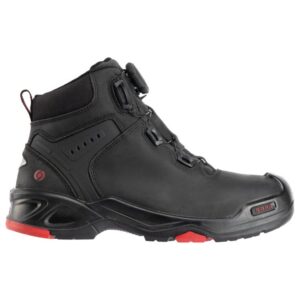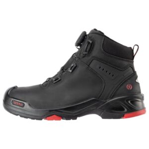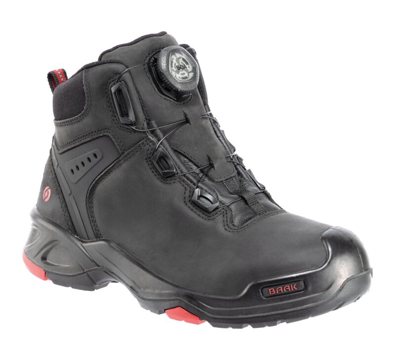 Robuuste veiligheidsschoen hoog met comfortabele pasvorm; EN ISO 20345 S3 SRC HRO met BOA® Fit Systeem; schacht vervaardigd uit hoogwaardig, LWG rundleder met safety systeem en reflecterende toepassingen; vochtregulerende textiel binnenvoering; ETPU hiel dempingselement; zacht dempende Baak PU-Softstep-inlegzool, ademend met hoge vocht opname en afgaven, antibacterieel; Baak® go&relax-systeem, voor voetverantwoord afwikkelen, bestaat uit Baak Stalen-Flexneus & PU/Nitril loopzool met Baak-Flexzone in het balvlak en geïntegreerd H-koppelingselement; PU kruipneus; loopzool hittebestendig tot 300°C bij kort contact; bijzondere antislipeigenschappen; Gecertificeerd voor orthopedische steunzolen. Volgens DGUV Regel 112-191; stalen Flexneus biedt veel tenenvrijheid; kevlar binnenzool; maten 38-48 wijdte 11