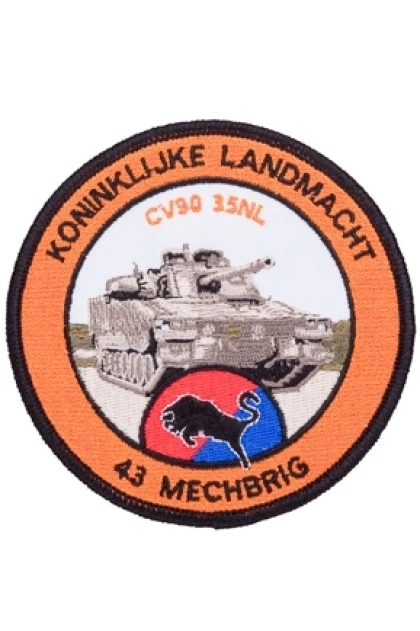43e Mechanische Brigade CV90 35NL opstrijkbare badge en toon je trots voor dit krachtige gevechtsvoertuig!