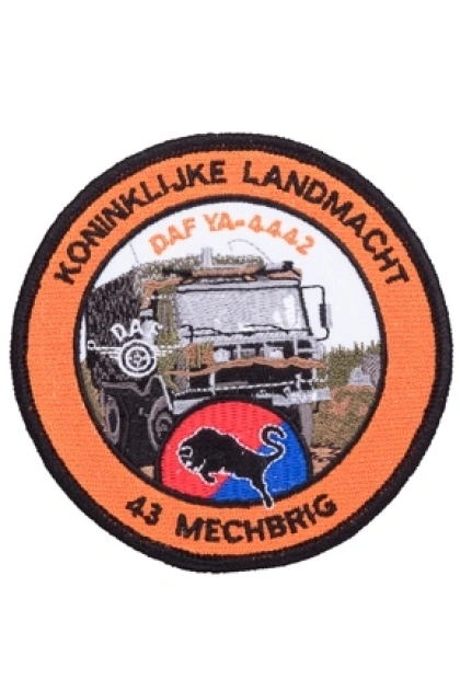 43e Mechanische Brigade DAF YA-4442 opstrijkbare badge en toon je waardering voor dit essentiële militaire voertuig!