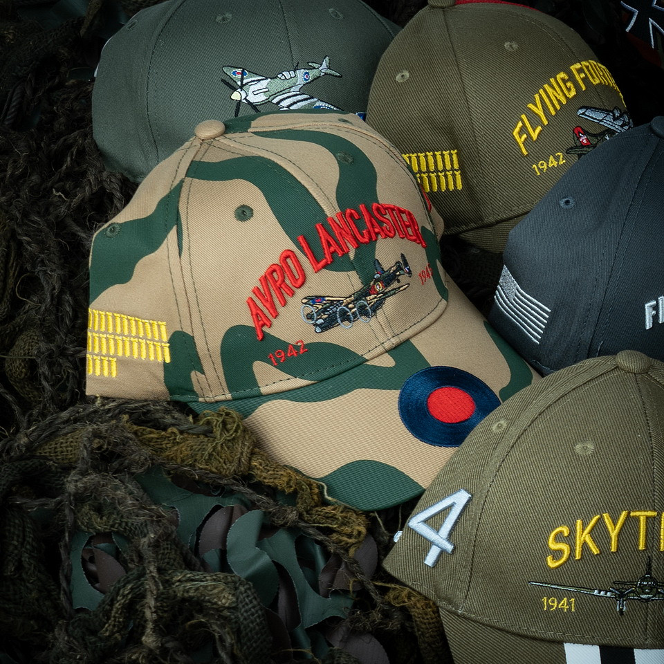 Ontdek de Baseball cap AVRO lancaster. Op de voorkant van de cap is een embleem te zien van de Lancaster, een viermotorige zware bommenwerper die gebouwd is door AVRO. Deze bommenwerper werd vooral gebruikt door de Royal Airforce.