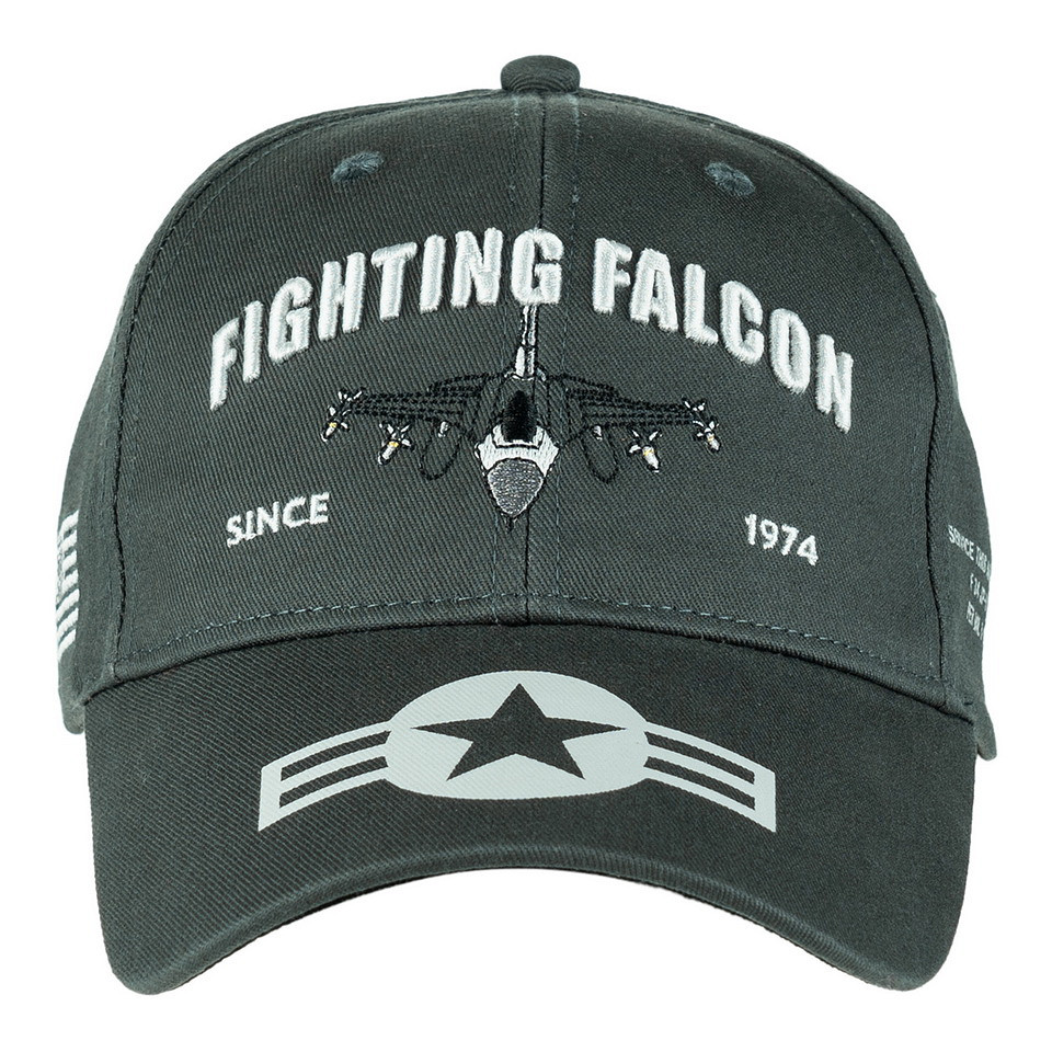 Ontdek de Baseball Cap F-16 Falcon. Op de voorkant van de cap staat een embleem van de F-16 Fighting Falcon en de tekst 'Fighting Falcon'. De F-16 Fighting Falcon is een eenmotorige, multifunctionele straaljager die sinds 1974 veel wordt gebruikt.