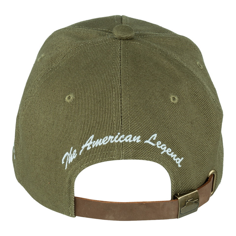 Ontdek de M4 Sherman Tank Cap. Op de voorzijde van de cap staat een embleem van de M4 Sherman, de belangrijkste tank die tijdens de Tweede Wereldoorlog in de Verenigde Staten werd ontwikkeld en gebouwd. Verder zijn er nog andere details op de cap te zien, zoals een ster aan de zijkant en de tekst 'The American Legend op de achterkant.