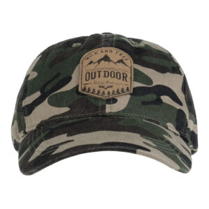 Deze stonewashed baseball cap is een stoere, avontuurlijke pet. Op de voorkant van de pet staat een embleem met de woorden 'Wild and free' en 'Outdoor'.
