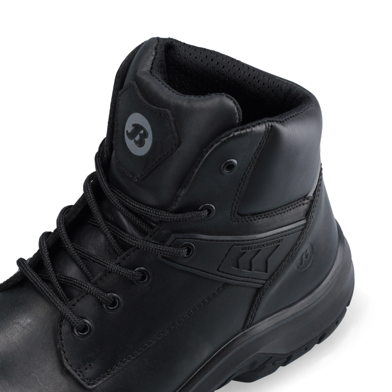 De Enduro PWR412 is een hoog model veiligheidsschoen met Walkline® technologie, en geavanceerde technologieën zoals Easy Rolling®, Heel Lock System® en Tunnel system®, die allemaal helpen de natuurlijke positie van de voet te ondersteunen. De PWR412 valt in de S3 veiligheidscategorie en heeft een aluminium neus, een stalen penetratiebestendige inzet en een PU-slijtvaste neus en is voorzien van een ladder grip. De zool is gemaakt van PU- en rubbermateriaal, waardoor de schoen bestand is tegen extreme hitte en brandstofolie. Het bovenwerk van de schoen is gemaakt van hoogwaardig volnerf zwart leer. De voering is gemaakt van textiel en beschikt over Bata Cool Comfort® technologie voor comfort en frisheid. Loopzool TriTech plus – rubber zool Neus: Aluminium Tussenzool: Staal Voering: Bata Cool comfort Schacht: Volnerf leer Met PU kruipneus alternatief / vervanger voor PWR312 Dit is een model uit de Enduro collectie