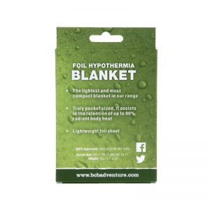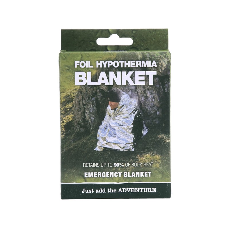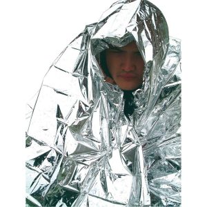 Lichtgewicht en compact deken welke in een noodsituatie gebruikt kan worden om warm te blijven.