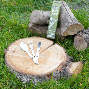Traditionele lichtgewicht bestekset, ideaal voor tijdens kamperen of outdooractiviteiten.
