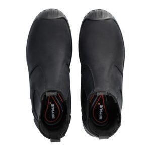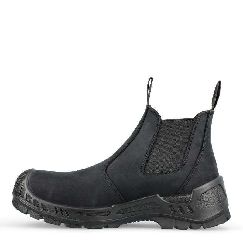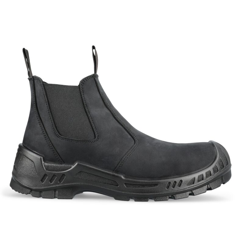 Veiligheidslaars van ademend, waterafstotend en slijtvast leer. Met sterke polyester lussen en breed elastiek in de schacht die het gemakkelijk maken om de laars uit en aan te trekken. Flexibele, slipbestendige en schokabsorberende loopzool van PU/PU. De inlegzool is gemaakt van schokabsorberend, ademend en zweettransporterend PU en de binnenvoering heeft extra versteviging aan de hiel. Met kruipneus van TPU voor extra slijtvastheid. Metaalvrij.