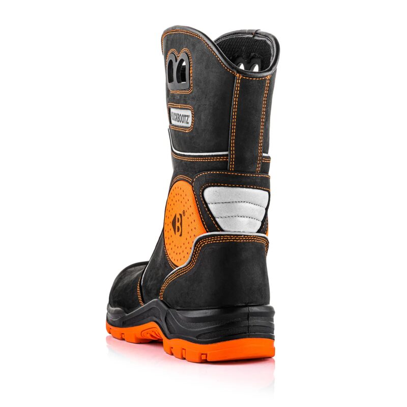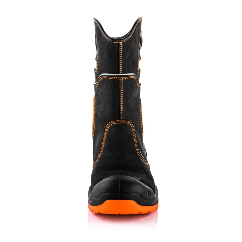 Een stevige lederen laars voorzien van high viz Cordura, gecertificeerde enkelbescherming (AN), een sterke kruipneus (SC), volledig waterdicht (WR) en 100% metaalvrij. Deze lederen laars is licht, comfortabel, heeft de nieuwste laddergrip loopzool (LG) en heeft een hitte- brandstof- en oliebestendige antislip loopzool (HRO / FO).