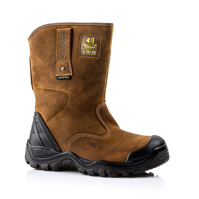 Stoere werklaars met sterke kruipneus, waterdicht, sterke olie- en hittebestendig (tot 300 º C) rubberen zool, kruipneus en voorzien van hoogste norm antislip zool (SRC).