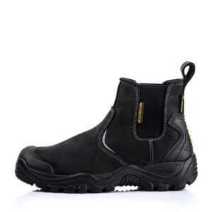 - Olie- en Hittebestendige Zool: De zool is antislip en bestand tegen temperaturen tot 300°C, waardoor deze laars ideaal is voor gebruik in hete en olieachtige omgevingen.