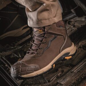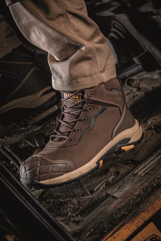 Super licht gewicht, 100% waterdicht en een stoer uiterlijk. Voorzien van een kruipneus is dit dé alleskunner. S3 SRC • Lichtgewicht middelhoge veterschoen • Waterdicht • Honey volnerf runderleder • TRADEZ zool • TPU kruipneus en hielversteviging • Metaalvrij • Uitneembare comfortabele inlegzolen • Maten 40 - 47 • Sectoren: Afbouw, Industrie, GWW, Installatie, Onderhoud