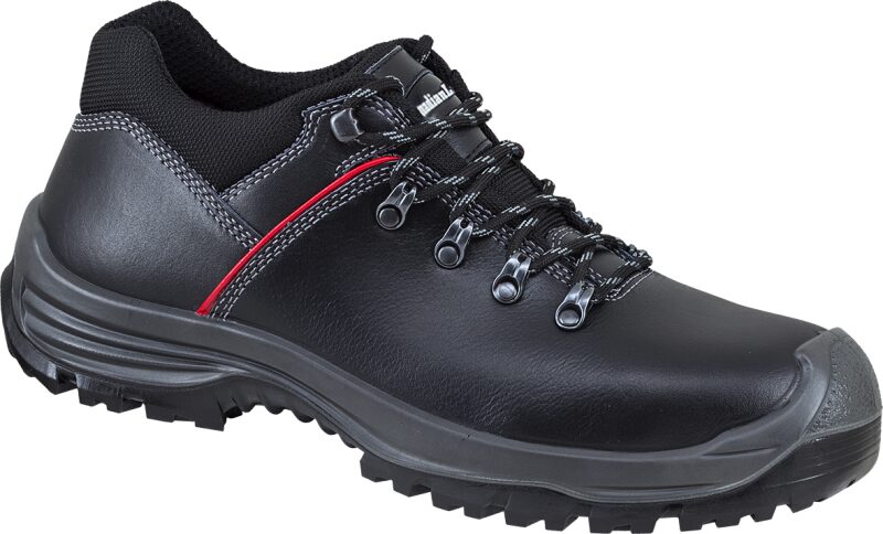 Laag S3 SRC veiligheidsschoen met kruipneus. Kunststof neus, Protector-Z kunststof tussenzool, Glad leren buitenkant, Ademend 3D space mesh voering, Dubbellaagse PU zool bestendig tegen; olie, benzine en zuur. Antistatisch, Anatomisch gevormde comfort inlegzool.