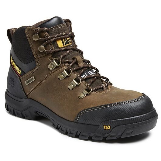 Caterpillar Veiligeheidsschoen met lederen upper, rubberen loopzool, stalen veiligheidsneus, kevlar tussenzool met overneus.