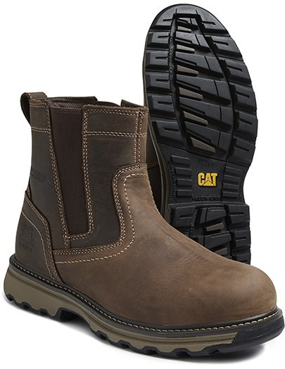 S1P, Leren bovenkant, PU/PU loopzool, Stalen neus, Composiet tussenzool, Elastiek in de schacht, Lichtgewicht en slijtvast. veiligheidsschoen enkellaars Caterpillar