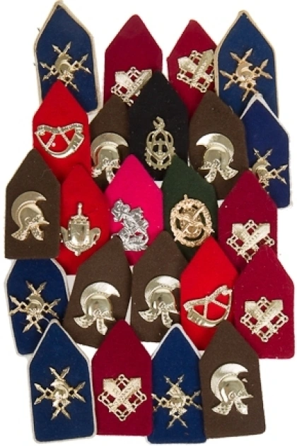 Authentieke kraagspiegels die een blik geven op de uniformen van het Nederlands Leger