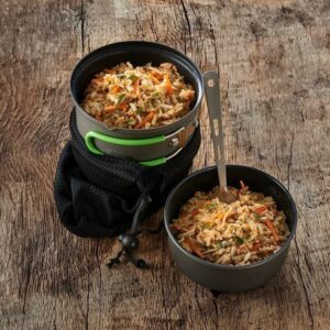Met 6 porties per blik en een eenvoudige bereidingswijze, biedt deze vegetarische risotto de juiste balans tussen groenten en koolhydraten. Ideaal voor preppers, hikers, en iedereen die op zoek is naar een betrouwbare maaltijdoptie voor noodgevallen.