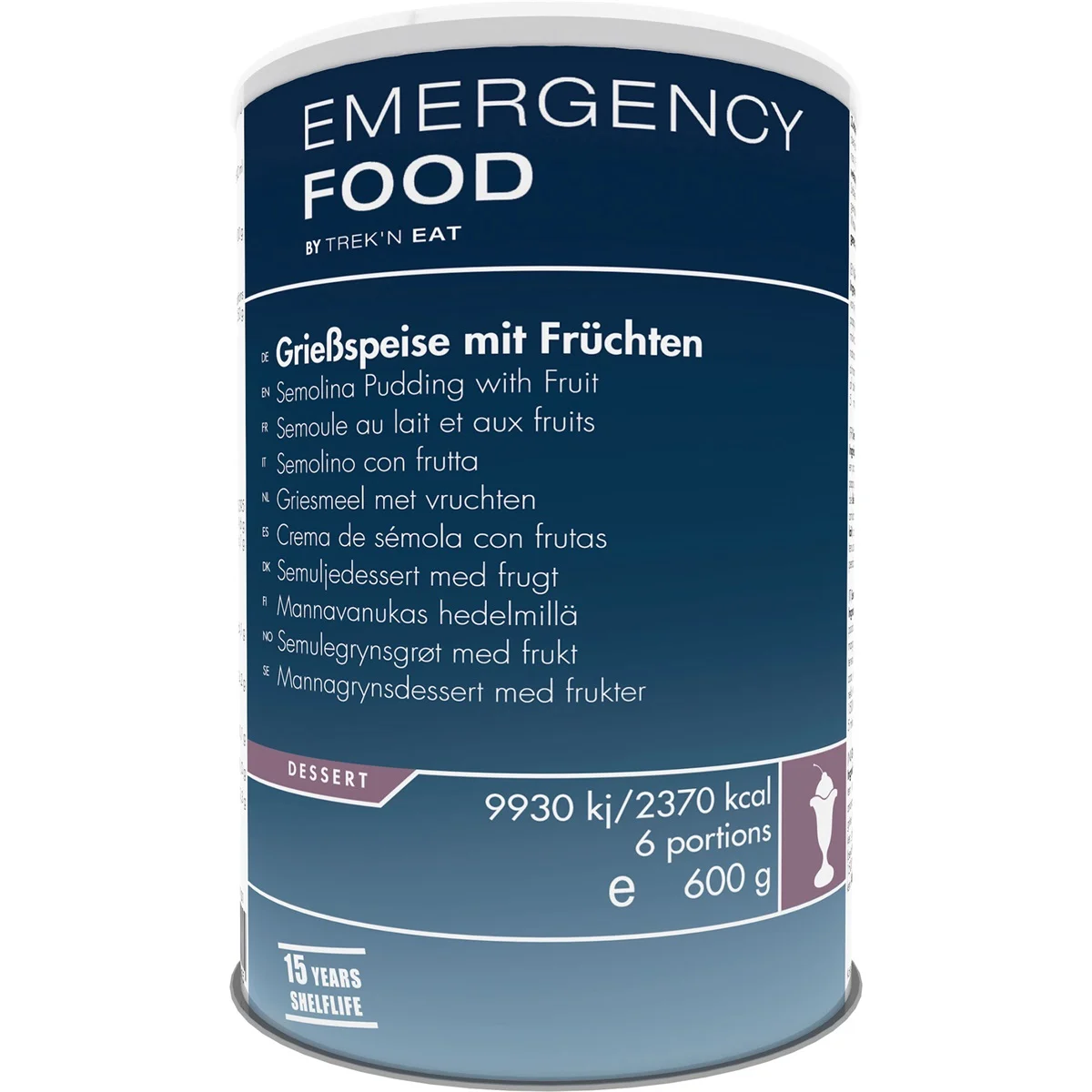 De Trek'n Eat Emergency Food – Semolina Pudding met Fruit is een voedzaam en smaakvol nagerecht dat ideaal is voor noodgevallen, outdoor avonturen en langdurige opslag. Dit blik bevat 6 porties en wordt eenvoudig bereid door de inhoud met kokend water te mengen en even te laten staan. Dankzij de vacuüm- en stikstofverpakking blijft het product 15 jaar houdbaar. Het hersluitbare blik zorgt ervoor dat je meerdere porties kunt bewaren na opening.