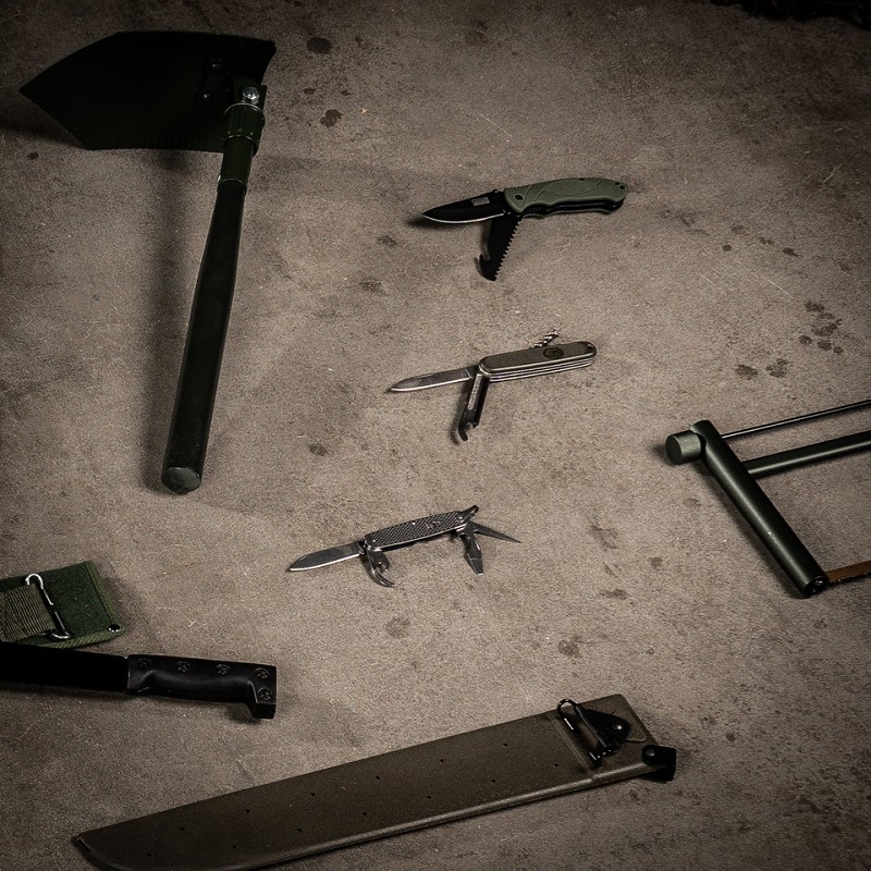 De bladen van het mes hebben een zwarte coating en bieden twee toepassingen, namelijk snijden en zagen. Het mes is namelijk voorzien van een snijblad en een zaagblad om hout of takken te zagen.
