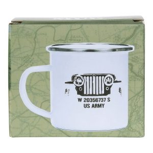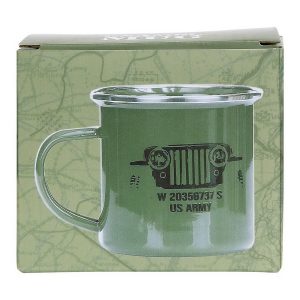 Emaille mok met U.S. Army Jeep print. De mok is gemaakt van 100% emaille. Inhoud: 300 ml Materiaal: Emaille