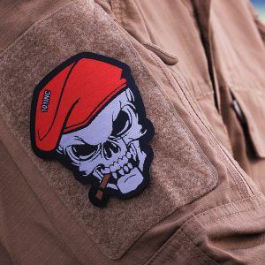Zeer fijn geweven embleem van 100% stof met klittenband achterzijde.