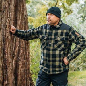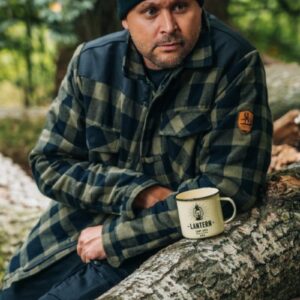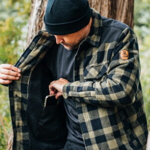 Comfortabele en trendy houthakkers jas met warme sherpa voering. Ideaal voor de koudere dagen in het tussenseizoen en eventueel voor het winterseizoen. Perfect voor s’avonds bij het kampvuur!
