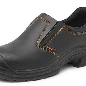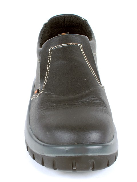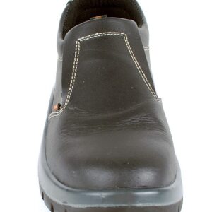 Veterloze veiligheidsschoen. Voorzien van stevige elastiek in de schacht, waardoor het loopcomfort gegarandeerd blijft .Dit heeft een stalen neus en tussenzool tegen vallende voorwerpen & penetratie van buitenaf, Categorie S3, EN 345 lage veiligheidsschoen..