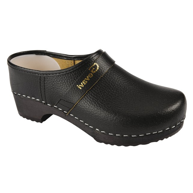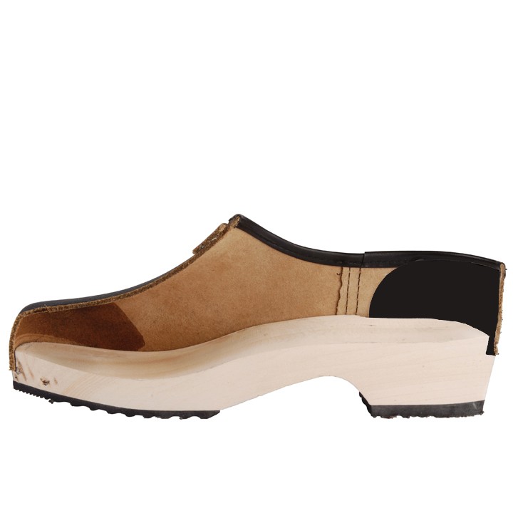 Schoenklomp met dichte hak en rundlederen kap. Houten binnenzool en pvc loopzool. Te gebruiken voor licht tot middelmatig gebruik.