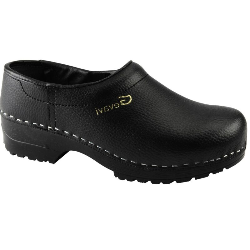 Schoenklomp met generfde, 100% runderlederen kap. houten binnenzool en pu loopzool. Voorzien van comfortabele polster en extra ruime instap. PU loopzool.