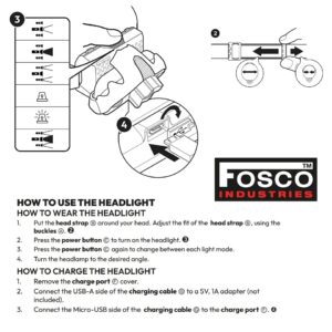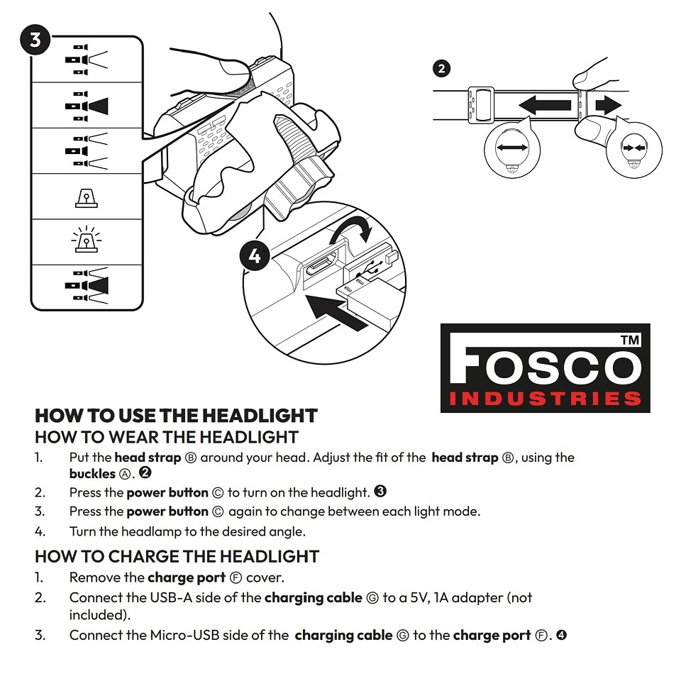 Hoofdlamp met diverse functies van Fosco Industries. Voorzien van elastische hoofdband welke in maat te verstellen is. Voorzien van oplaadbare accu, en meerdere lichtfuncties. Ideaal voor outdooractiviteiten, zoals kamperen, bushcraft, hiking etc.