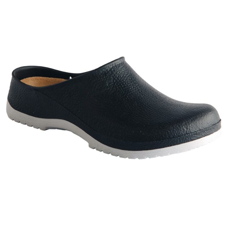 Polyurethaan cloq met kurken inlegzool. Inlegzool aan de bovenzijde voorzien van lederen dek. 100% Waterdicht. Zeer slijtvast. Ruime pasvorm.