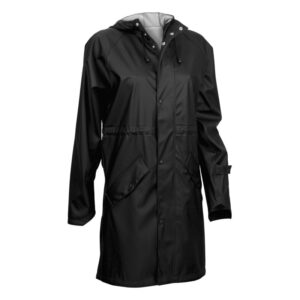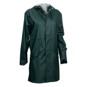 Kwaliteit: 100% PU, Kenmerken: PU coating, 3000 mm waterdicht, gelaste naden, lang rugpand, ventilatieopeningen op de rug met overslag, waterdichte rits met overslag met drukknopen, capuchon met elastisch koord, steekzakken met regenoverslag, winddicht.