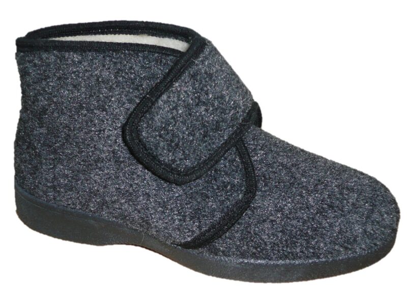 Pantoffel met klitband en gevoerd met echt scheerwol