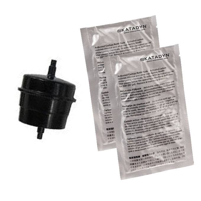 Wordt geleverd met twee zakjes actief kool, elk goed voor 200 liter water (totaal 400 liter of 6 maanden gebruik).