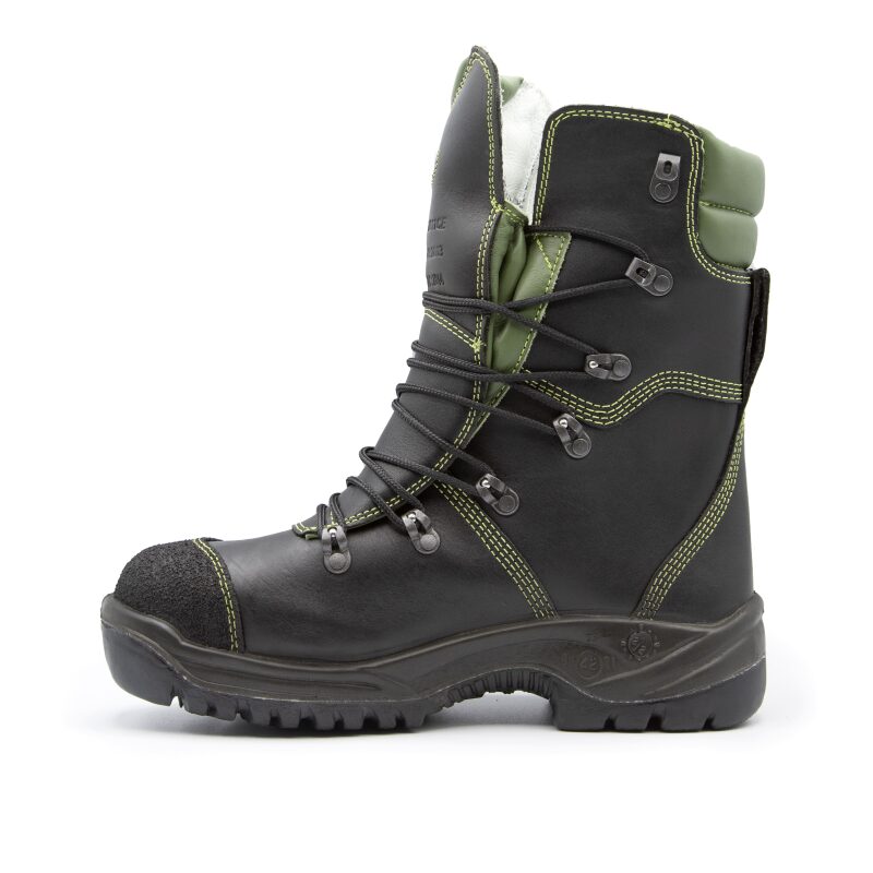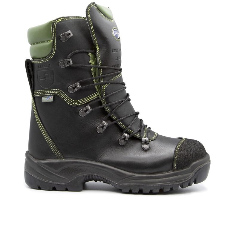 S3 + KN Hoog, Veiligheidsklasse: Klasse 1 = 20 m/s zaagblad, compsite neus en kevlar tussenzool, sympatex waterdichte voering, leren inlegzool Lavoro Sherwood Kettingzaagschoen S3 Merk: Lavoro Klasse: Klasse 1 geclassificeerd (20m/s) Normering: S3 Neus: staal Materiaal: Paarden leer Sympatex waterdicht membraan Zool: PU Tussenzool: Staal Gevoerde en volledig gevoerde binnentong voor een pasvorm op maat EN:381 ISO 20345: 2011 + 17249 Kleur: zwart Verkrijgbare maten 39 t/m 47