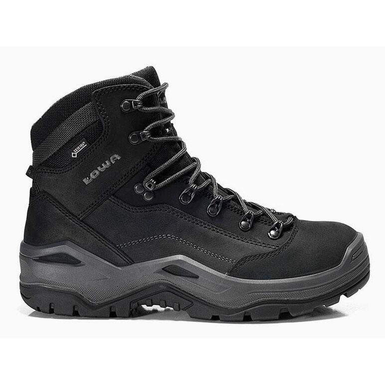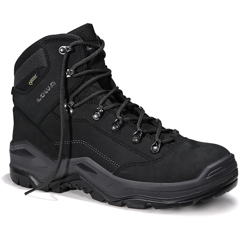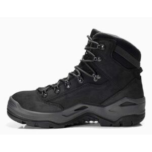 LOWA Veiligheidsschoen halfhoog RENEGADE Work GTX black Mid S3 CI Veiligheidsschoen uit de LOWA Work Collection-serie met de volgende uitrusting: gehydrofobeerd nubukleder/gehydrofobeerd textiel, binnenvoering GORE-TEX Performance Comfort Footwear, gesloten en gepolsterde tong, volledige inlegzool LOWA, antistatische softvlies-binnenzool, stalen tussenzool, RUBBER/PU-zool VIBRAM® met MONOWRAP®-technologie, stalen neus.