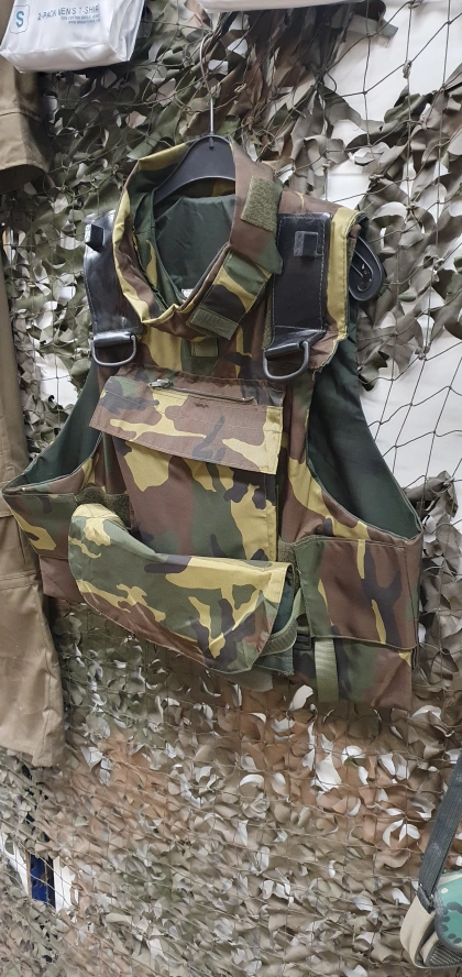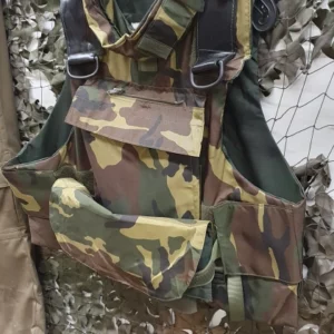 Dit Militair Italiaans NATO Protectie Vest is een authentiek stuk uitrusting van het Italiaanse leger, oorspronkelijk ontworpen als een kogelvrij vest. Hoewel het exclusief de protectie schilden en vulmateriaal wordt geleverd, behoudt het zijn robuuste en functionele ontwerp, ideaal voor airsoft, tactische activiteiten of als verzamelobject. Het vest heeft een stoere camouflageprint en is uitgerust met veel zakken voor het gemakkelijk opbergen van spullen tijdens activiteiten. Het NATO Model AP98 (antiproiettile) geeft het vest een authentieke militaire uitstraling, waardoor het een unieke toevoeging is aan elke tactische uitrusting.