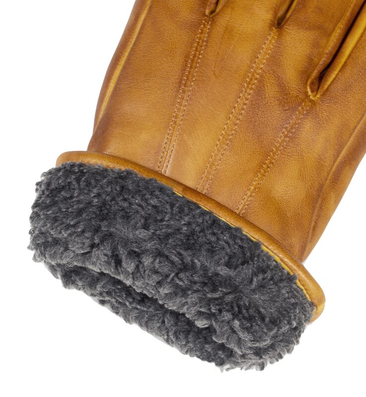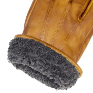 luxe nappa lederen heren handschoenen met teddy voering en verstelbare gesp.