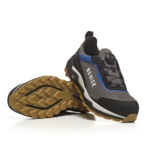 De S3 veiligheidsschoen "ATHELTIC LOW FLS GREY BLUE" uit de Athletic-serie van No Risk® combineert alle belangrijke eigenschappen die je nodig hebt op het werk. Hij is niet alleen licht, maar ook waterafstotend en voorzien van ademende voeringmaterialen om je maximaal comfort te bieden. De schoen is voorzien met het snel sluit systeem MOZ.