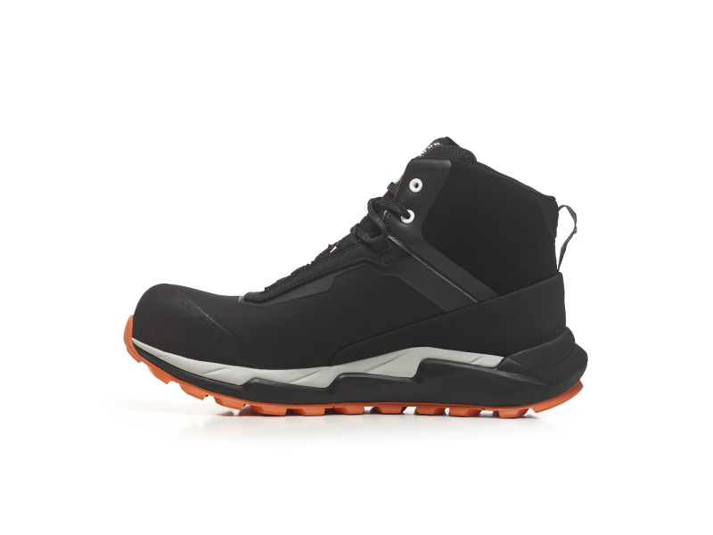De PU met EVA loopzool biedt een optimale combinatie van duurzaamheid, flexibiliteit en schokabsorptie. Het zorgt voor een veilige grip en een aangename loopervaring, zelfs op oneffen oppervlakken. De Kevlar®-tussenzool biedt extra bescherming tegen penetratie door scherpe voorwerpen. De composiet neus biedt uitstekend comfort en perfecte bescherming tegen stoten.