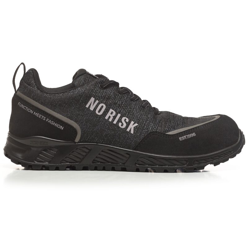 Deze S3 veiligheidsschoen uit de Liberty-serie van No Risk® combineert alle belangrijke eigenschappen die u op het werk nodig heeft. Hij is niet alleen licht van gewicht, maar ook waterafstotend en voorzien van ademende voeringmaterialen voor maximaal comfort. Bijzonder van deze schoen is het TexPET bovenovenmateriaal: een gerecyclede eco-duurzame stof. De direct geïnjecteerde Mono PU-zool zorgt voor een optimale combinatie van duurzaamheid, flexibiliteit en lichtheid. Het biedt een goede schokabsorptie en zorgt voor een comfortabele loopervaring, zelfs op oneffen ondergrond. Daarnaast heeft de schoen een Kevlar® beschermzool die extra bescherming biedt tegen het binnendringen van scherpe voorwerpen. De composiet neus biedt uitstekende bescherming voor uw tenen zonder de schoen te verzwaren. Licht gewicht, met TexPET materiaal veiligheidsschoen Bouw, montage, magazijn, binnenruimtes, logistiek, automotive Ultra licht, Ademend, ESD, antislip, oliebestendig, waterafstotend, 100% metaal vrij Beschermneus composiet Beschermzool kevlar Bovenmateriaal waterafstotend textiel Loopzool Mono PU Voering materiaal Comfort voering zwart Breedte 11 Inlegzool Comfort No Risk Liberty Collectie