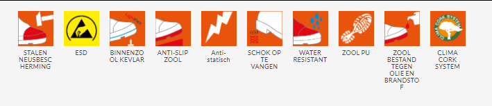 MATEN: 39 – 48 BREEDTE MAAT: 10 NORMERING: EN ISO 20345:2011 CE S3 SRC BESCHERMNEUS: STAAL BESCHERMZOOL: KEVLAR SCHACHT: REFLECTEREND TEXTIEL BINNENVOERING: COOLMAX ZOOL: TWEE COMPONENTEN PU EXTRA: CLIMA CORK SYSTEM – Verhoogd draagcomfort door kurklaag GEWICHT 597 gram per schoen (mt. 42) Type: Basic all-round veiligheidsschoen Geschikt voor: Logistiek, Automotive, Voeding, Bouw en Agri Bescherming: stalen neus en kevlar beschermzool Leest: standaard leest Zool: dunne zool – flexibel en licht gewicht Extra: Reflecterend textiel, lichtgewicht en flexibel, sportief model
