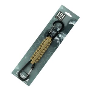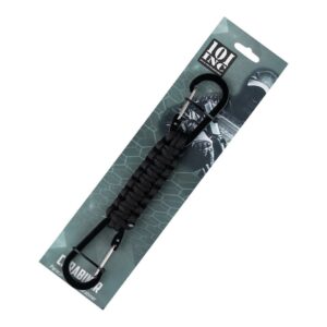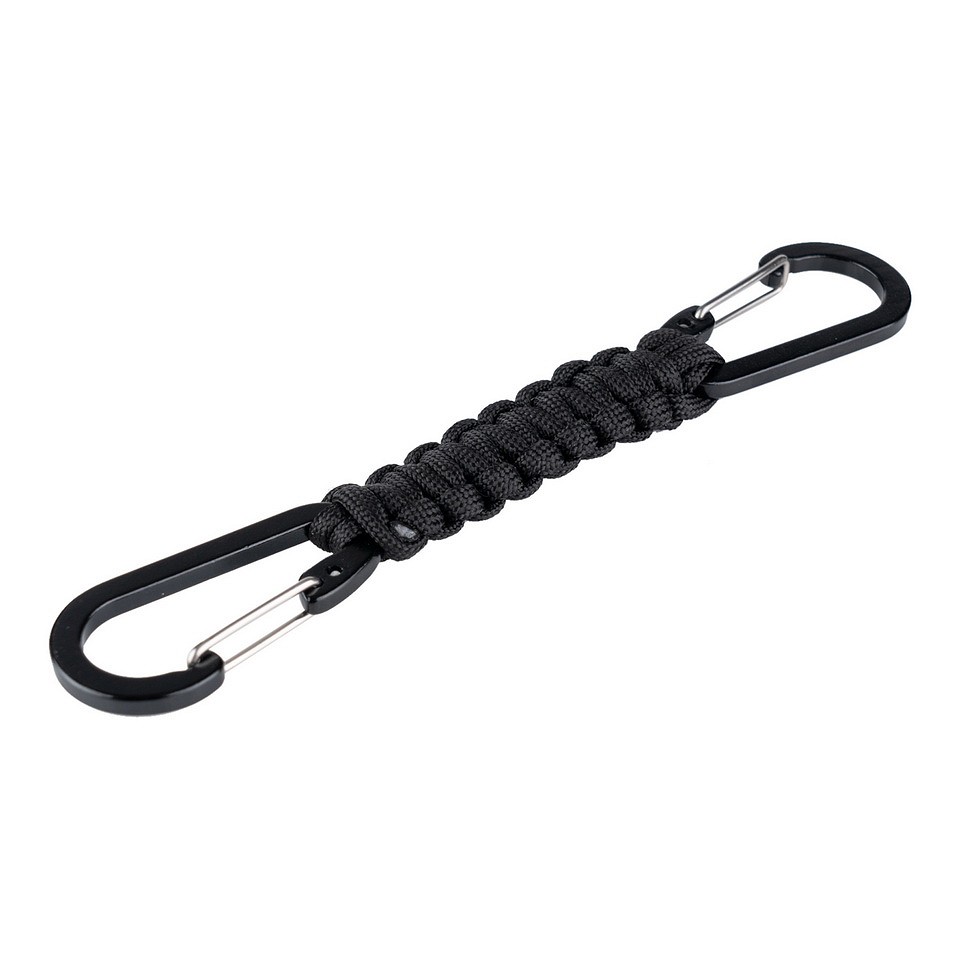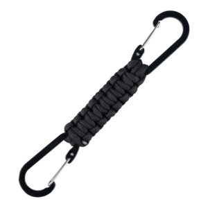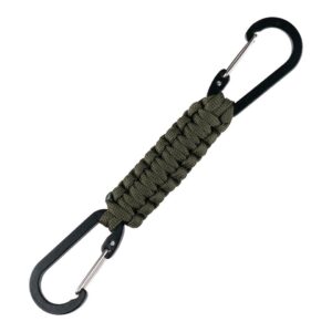 De Paracord dubbele karabijnhaak JF026 is een handig en veelzijdig outdoor accessoire, ideaal voor diverse avontuurlijke activiteiten. Voorzien van duurzaam paracord touw en twee stevige karabijnhaken voor een veilige bevestiging.