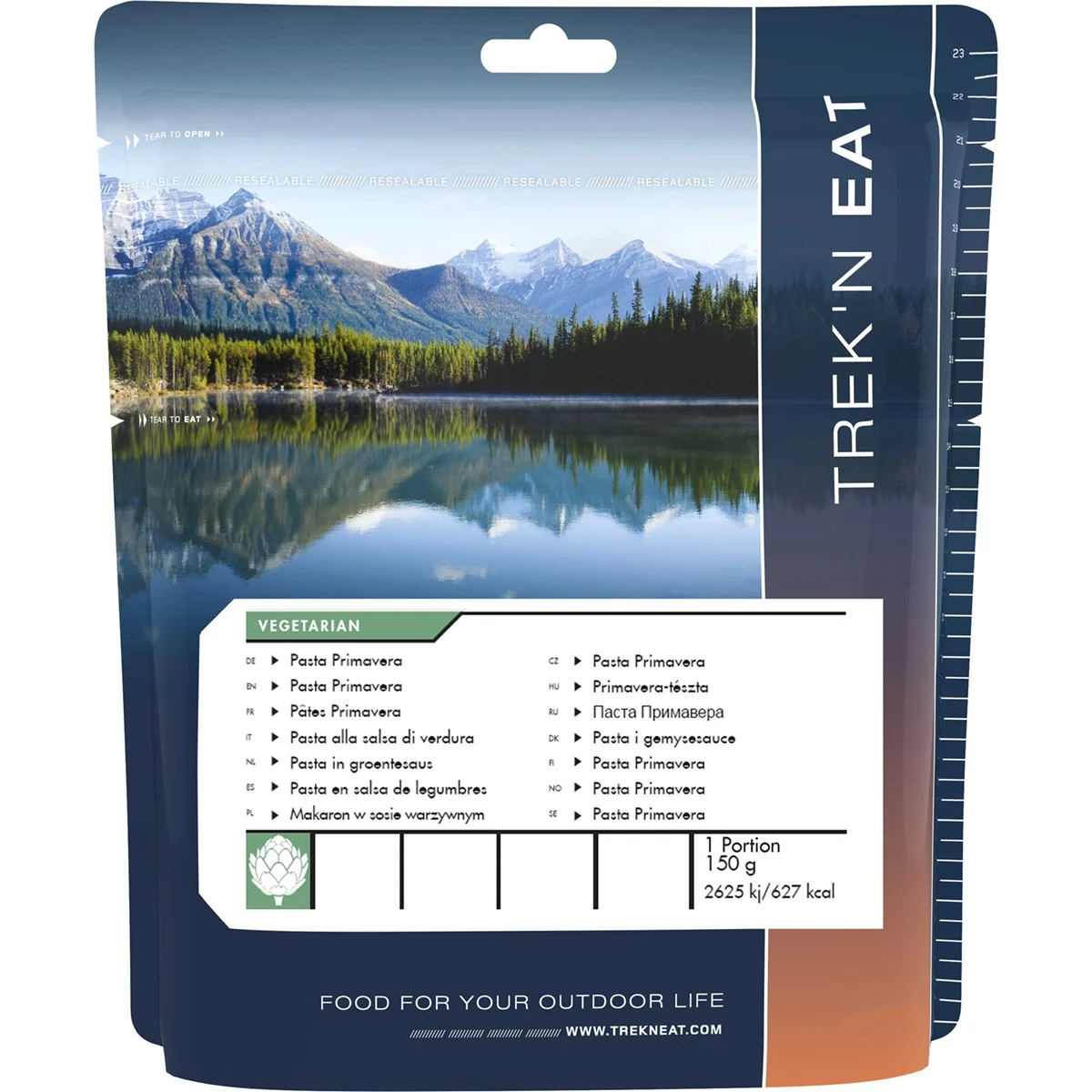 Trek'n Eat Pasta Primavera is een smaakvolle en voedzame maaltijd, ideaal voor onderweg, bij het kamperen of voor noodgevallen, met de kwaliteit en het gemak van natuurlijke ingrediënten.