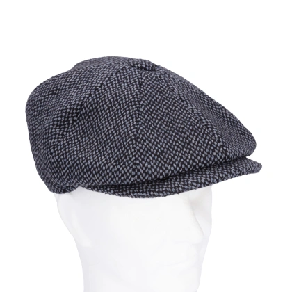 - Stijlvol Peaky Blinders-design: Grijs/zwarte gemêleerde look met een authentieke gesloten klep met drukknopen.