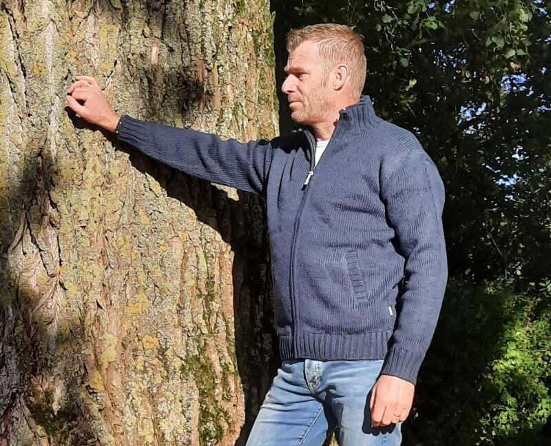 Deze hand gebreide herenvest is gemaakt van 100% puur Nieuw-Zeelands wol met een fijne comfortabele katoenen voering. Een absolute unieke en warme jas, draagbare meerdere maanden van het jaar, zelfs op een koude zomeravond. Wasinstructies: Handwas of apart wassen op wol programma in de wasmachine.