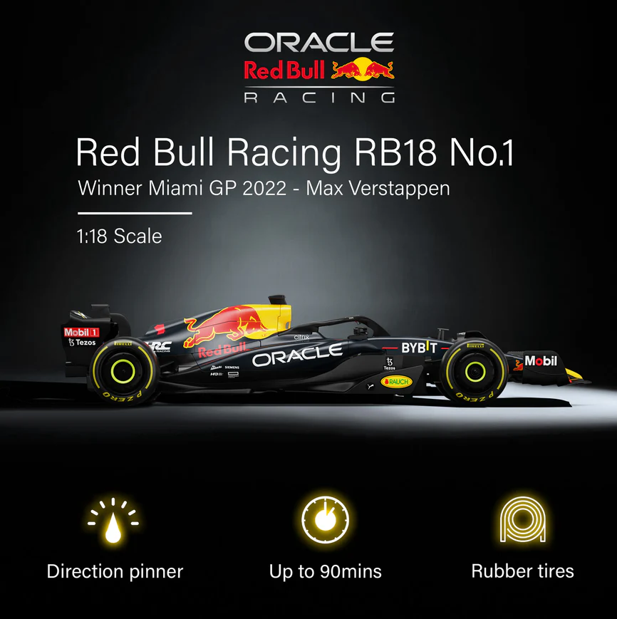 Ontvang de ultieme race-ervaring met de Oracle Red Bull Racing RB18 RC Car 1/18 Schaal, een nauwkeurig nagemaakte replica van de iconische F1-wagen. Deze auto is volledig gelicenseerd door de F1-teams en beschikt over een gestroomlijnde carrosserie, gedetailleerde interieuronderdelen en een 2.4Ghz controle systeem voor maximale wendbaarheid. Met een bereik van 15 meter en de mogelijkheid om samen met andere auto's te racen, is dit de ideale keuze voor RC-enthousiastelingen.