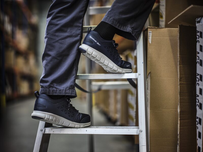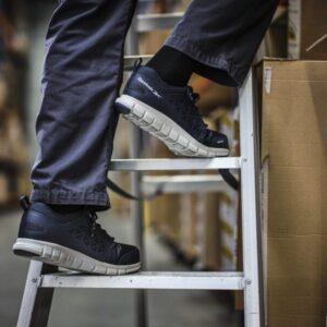Sportieve werkschoen met gepatenteerde Excel Light dempende witte buitenzool en unieke memory tech binnenzool. Extra licht (400 gr.), v.v. extra ademend 3D mesh buitenmateriaal, aluminium neus en composiet veiligheidszool.