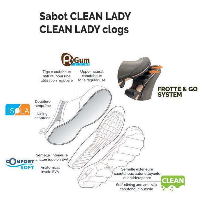 Materiaal: R'GUM EFFICIENT rubber Voering: ISOLA neopreen Binnenzool: met schuim gevoerd en uitneembaar CONFORT SOFT Zool: CLEAN rubber Ultrasterk dankzij talrijke verstevigingen. Zelfreinigende en antislip CLEAN-zool, een innovatie van Rouchette. Uitneembare en thermogevormde binnenzool voor optimaal comfort. Neopreenvoering voor aangepaste isolatie. Textiele nokken voor eenvoudiger verwijderen.