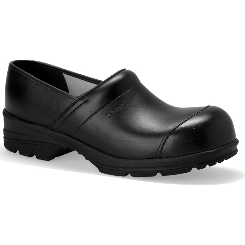 lichtgewicht hygiënische veiligheidsklomp met lage instap, gelijmde leren kap op een buigzame PU antislipzool die stil en comfortabel draagt, zeer geschikt voor professioneel gebruik in de zware industrie waar een beschermende tussenzool wordt vereist.