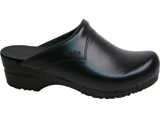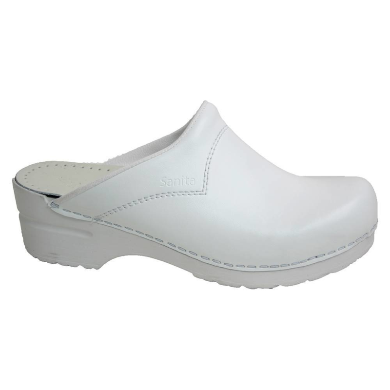 Comfortabele en hygiënische klomp met open hiel en buigzame PU zool, sterk anti slip, geluidsarm en comfortabel , echt leren binnenzool en leren kap met sterke nieten in de kern van de zool bevestigd.